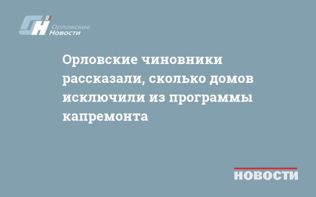Департамент ЖКХ, ТЭК и энергосбережения Орловской области пояснил, сколько домов исключено из программы капремонта, а сколько перенесено на последующие годы. Соответствующая информация опубликована на сайте обладминистрации.