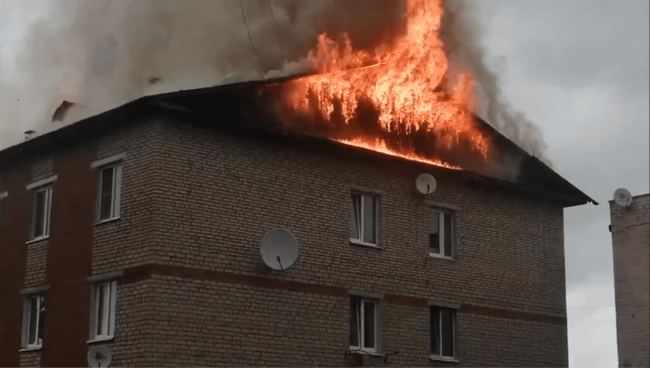 Так, на видео запечатлено, как горит крыша. Далее над домом поднимаются клубы дыма. Как ранее стало известно, в результате пожара крыша дома сгорела. Из горящего здания эвакуировали 15 человек, их планируют разместить в ПВР. Пострадавших при пожаре нет.