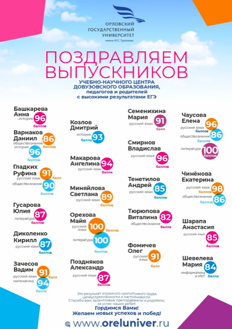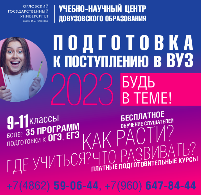 Центр довузовского образования ОГУ им. И. С. Тургенева проводит новый набор обучающихся