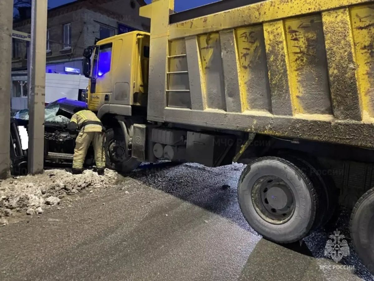 В Орле на Михалицына самосвал впечатал легковушку в столб