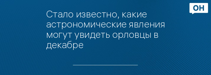 «Калужские новости» рассказали, какие астрономические явления могут увидеть жители ЦФО, в том числе и Орловской области, в декабре.