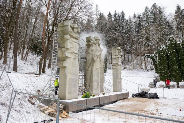 В Вильнюсе начали снос стел крупнейшего в Литве мемориала советским воинам на Антакальнисском кладбище.