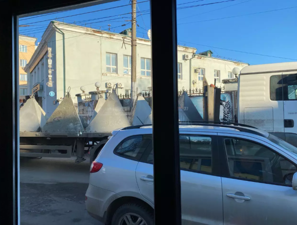 7 декабря в Орле напротив ТЦ «Атолл» остановились два длинномера с противотанковыми пирамидами.