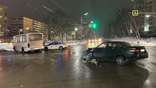 Ночью в Орле маршрутный автобус столкнулся с легковушкой