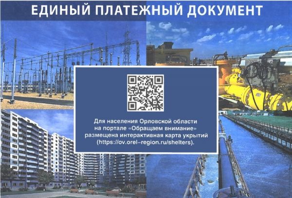 Для жителей Орловской области в едином платежном документе (ЕПД) начали размещать информацию об укрытиях на случай возникновения ЧС, сообщили в обладминистрации.