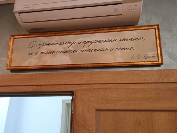 Посетителей галереи встречает цитата «Со временем взгляды и представления меняются, но и многое остаётся постоянным и вечным». Кстати, её автором является сам Олег Карпиков.