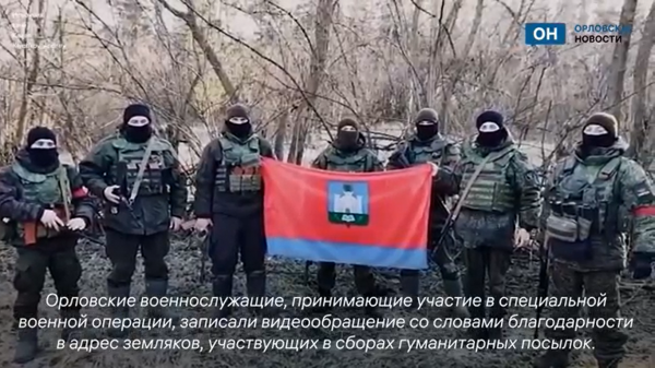 Орловские военнослужащие, принимающие участие в специальной военной операции, записали видеообращение со словами благодарности в адрес земляков, участвующих в сборах гуманитарных посылок.