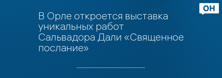 Самую масштабную серию графических работ Сальвадора Дали орловцы смогут увидеть с 29 декабря в Орловском музее изобразительных искусств. В рамках выставки «Сальвадор Дали. Священное послание» посетителям музея продемонстрируют 105 уникальных работ художника – его иллюстраций к Ветхому и Новому Завету из частного итальянского собрания.