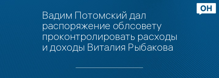 Вадим Потомский дал распоряжение облсовету проконтролировать расходы и доходы Виталия Рыбакова