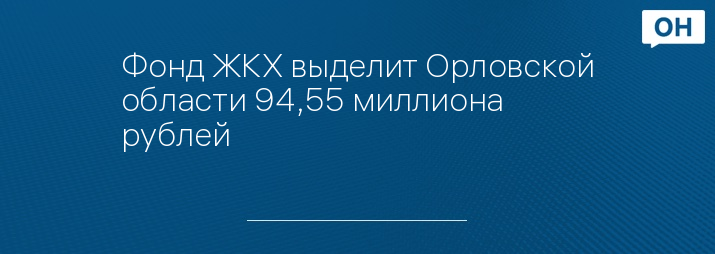 Фонд ЖКХ выделит Орловской области 94,55 миллиона рублей