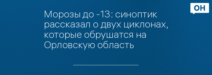 Морозы до -13: синоптик рассказал о двух циклонах, которые обрушатся на Орловскую область