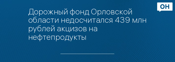 Дорожный фонд Орловской области недосчитался 439 млн рублей акцизов на нефтепродукты