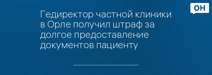 Гедиректор частной клиники в Орле получил штраф за долгое предоставление документов пациенту