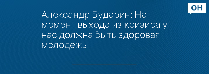 Александр Бударин: На момент выхода из кризиса у нас должна быть здоровая молодежь