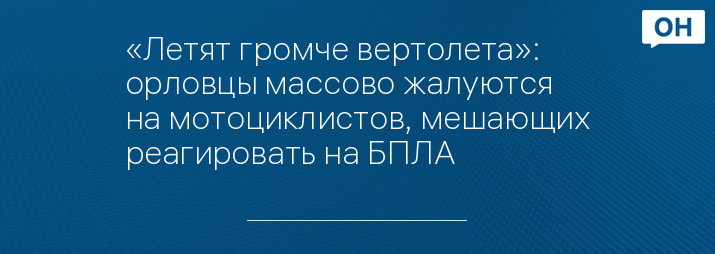«Летят громче вертолета»: орловцы массово жалуются на мотоциклистов, мешающих реагировать на БПЛА
