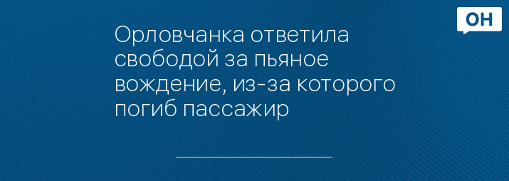 Орловчанка ответила свободой за пьяное вождение, из-за которого погиб пассажир