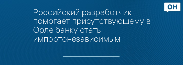Российский разработчик помогает присутствующему в Орле банку стать импортонезависимым
