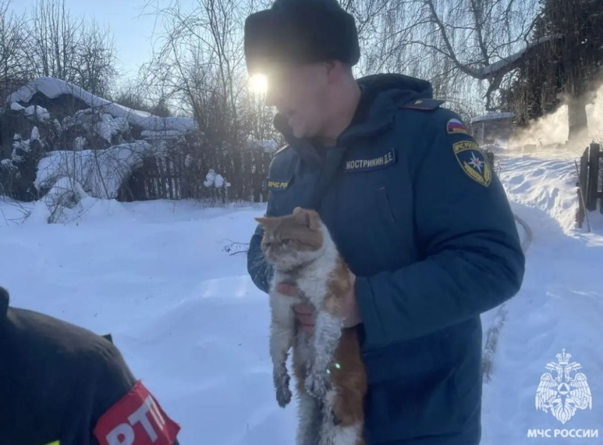 В Подбелевце Мценского района пожарные спасли кота и соседнюю постройку