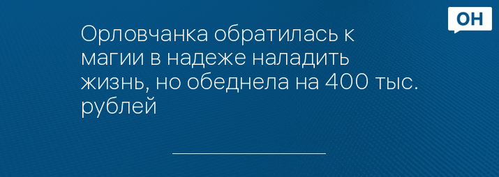 Орловчанка обратилась к магии в надеже наладить жизнь, но обеднела на 400 тыс. рублей