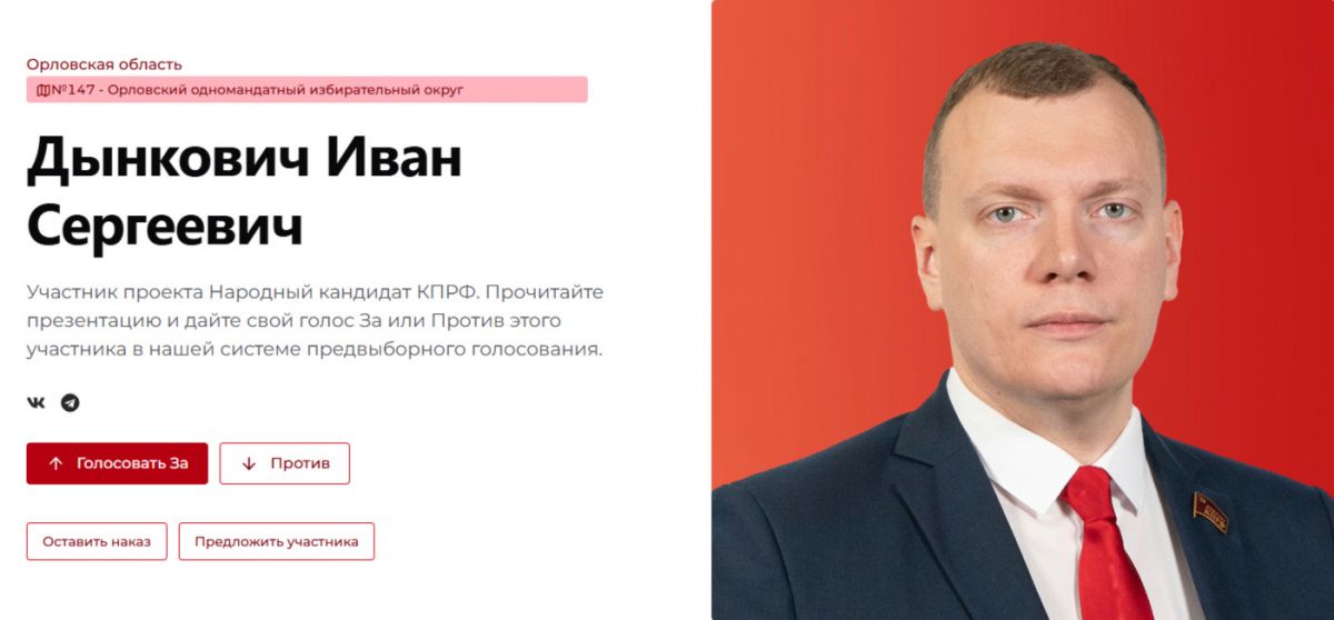 Дынкович участвует в праймериз от КПРФ в Орловской области