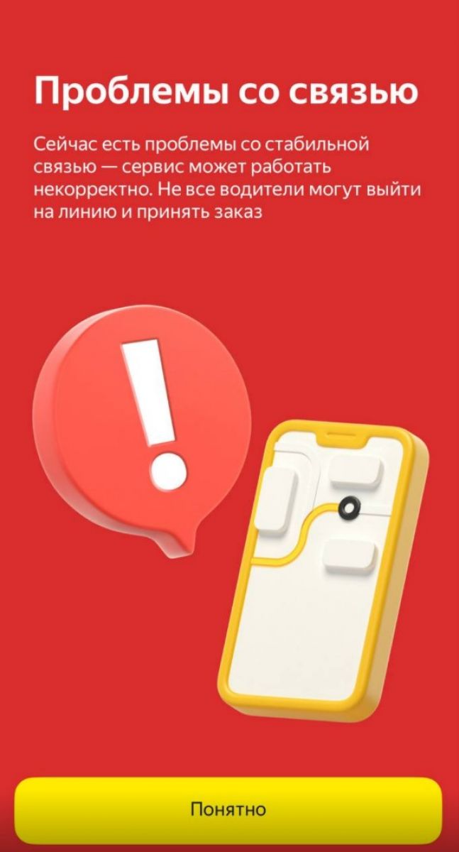 В приложении «Яндекс Такси» появилось предупреждение о том, что не все водители могут выйти на линию из-за проблем с интернетом. Стоимость поездок при этом значительно выросла - от 300 рублей за перемещение в границах нескольких остановок.
