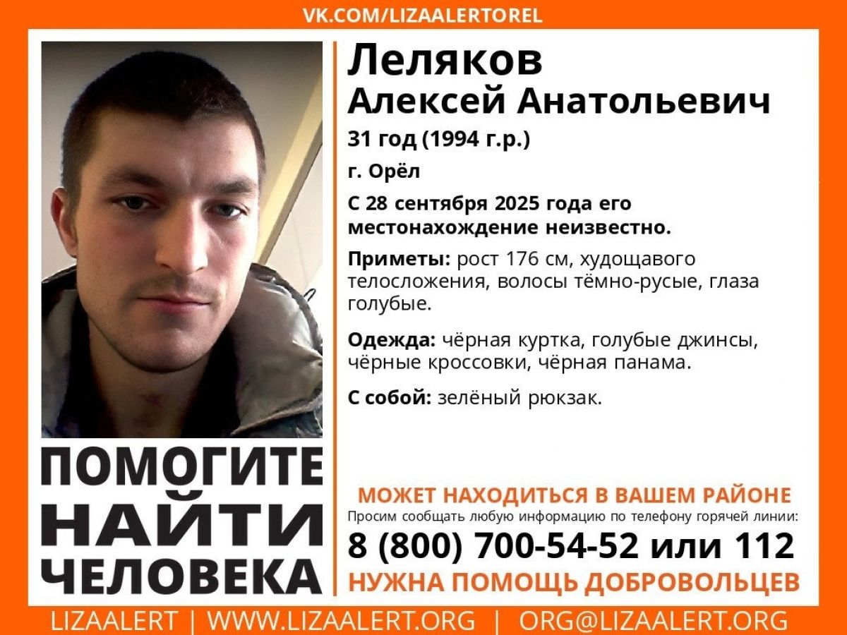Сейчас выясняются все обстоятельства исчезновения обоих орловцев. Поисковики и родные пропавших просят тех, кто обладает какой-либо информацией о местонахождении Алексея Лелякова или Сергея Треушкова, немедленно сообщить по телефонам, указанным в объявлениях.