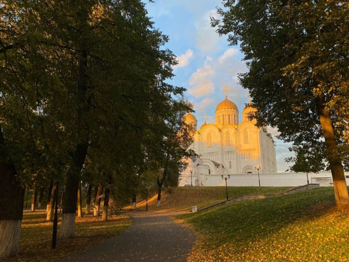 Церковь Покрова на Нерли находится в Боголюбово. Она стоит в отдалении от домов и больше подойдет для уединенных и долгих прогулок. Храм красив круглый год, а осенью яркие цвета только украшают место.