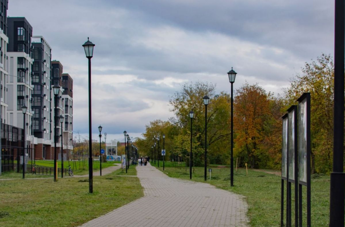 Кроме того, на локации есть площадка для выгула собак, велодорожки, домики-фудкорт, детские площадки, в самом конце «Лесопарка» протекает река.