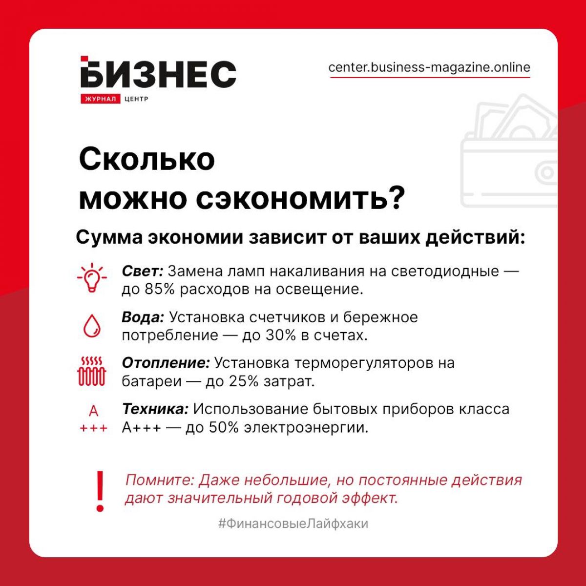 Плата за коммунальные услуги — весомая статья расходов в каждом доме. Но далеко не все знают, что сократить эти траты можно без ущерба для комфорта, просто начав грамотно и рационально использовать ресурсы. О том, как грамотно подойти к этому вопросу рассказал «Бизнес-журнал. Центр».