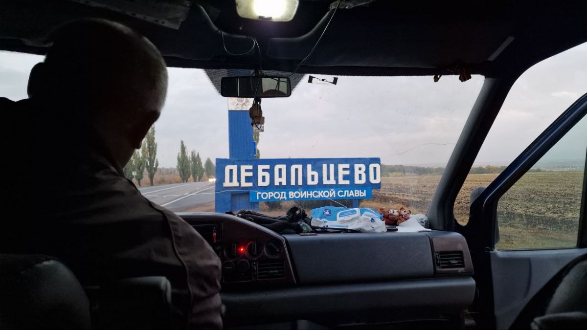 Волонтерский минивэн вновь проносится в осеннем мраке, рано окутавшим все вокруг. В отличие от утра сейчас волонтеры мчат к первой точке разгрузки. Ориентир для них - заправка и разбитый на боевых заданиях пикап.