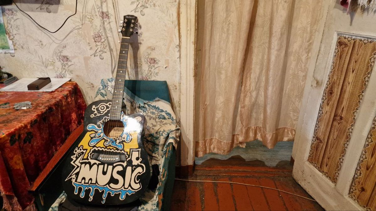 Беседу прерывает Дмитрий, держащий в руках гитару - одну из тех двух, что везли из самого Мценска.
