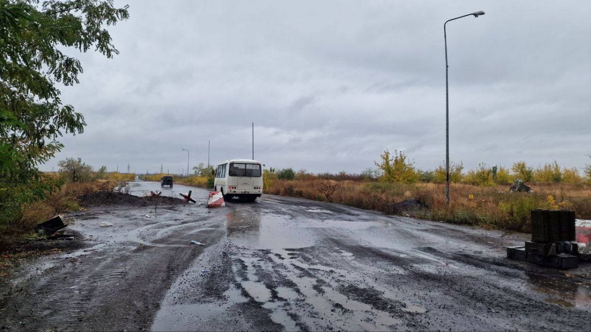 Дружескую беседу прервал едва не наехавший на бойцов и волонтеров ПАЗик с табличкой “Донецк - Авдеевка”. В остановившимся за блокпостом автобусе открылись обе двери, через которые во внутрь прошагали мужчины в камуфляже. Судя по всему, привыкшие к жизни в военное время пассажиры,сразу подали военным свои паспорта. Буквально через пару минут автобус уже рассекал пустую дорогу на Авдеевку.