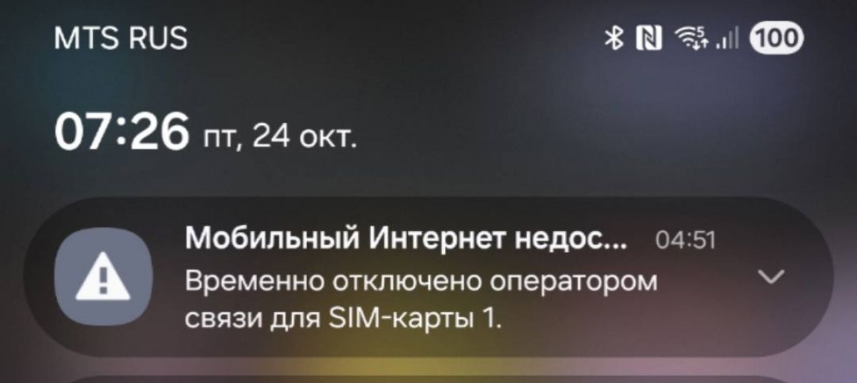 Напомним, абоненты МТС массово получили СМС о снятии ограничений. Новой массовой рассылки сообщений сегодня не была, но одна из наших читательниц сообщила, что ее об отключении интернета уведомили.