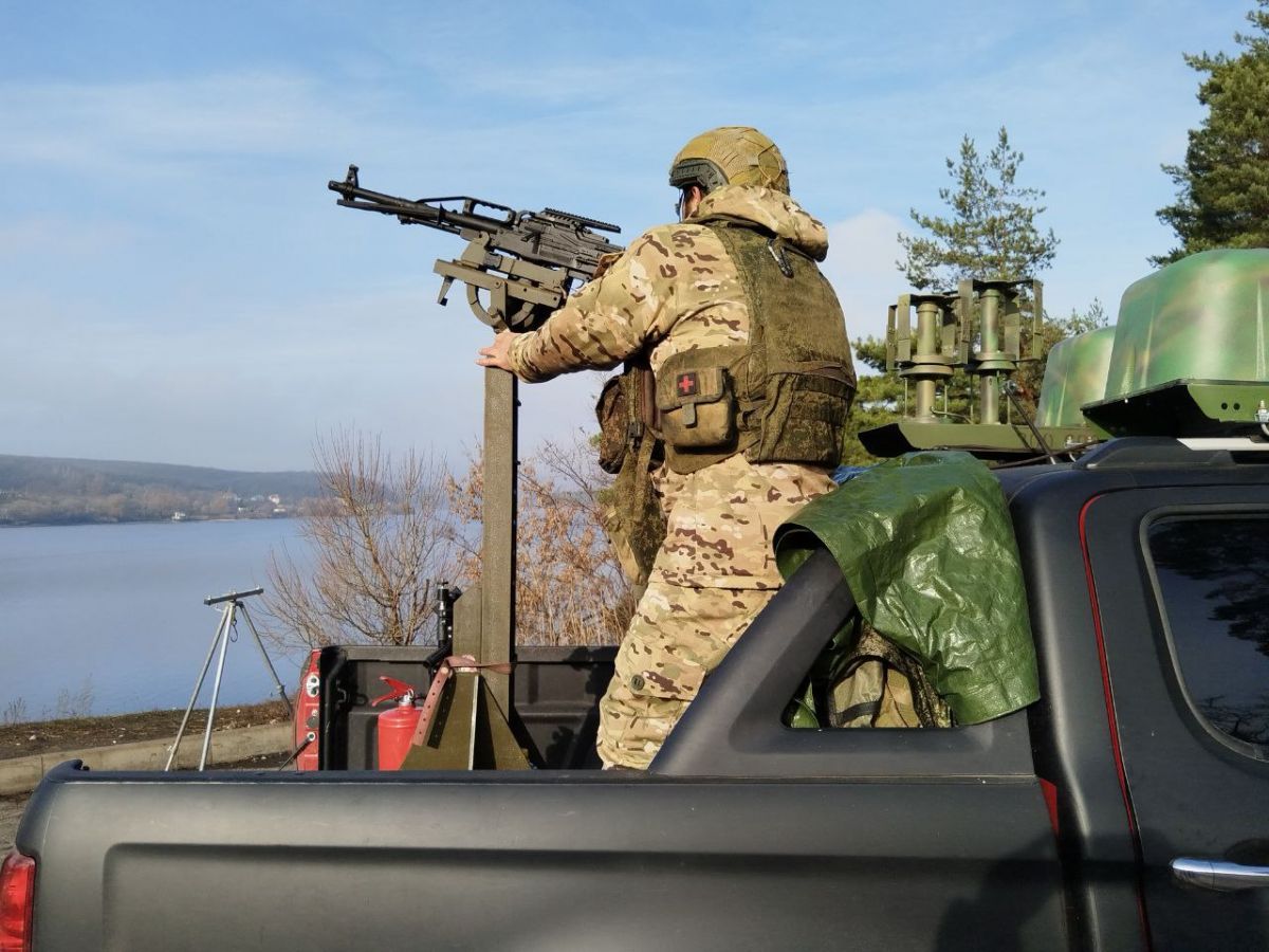 Это пикап, в кузове которого установлен пулемет с тепловизором. В одной расчете два или три человека. Когда спокойно, машина находится на одном из распространенных маршрутов БПЛА. Но, получив сигнал, парни оперативно выдвигаются и работают там, где нужно.