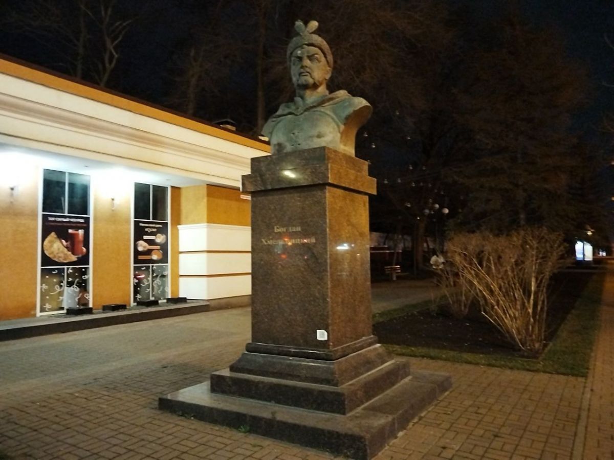 Памятник, а точнее - большой бюст, открыли в 2014 году, когда на Украине полыхнули сначала Киев, а потом и Донецк с Луганском. Во время церемонии открытия власти говорили о том, что любая братоубийственная война рано или поздно окончится появлением нового Богдана Хмельницкого, который научит русских и украинцев жить мирно.