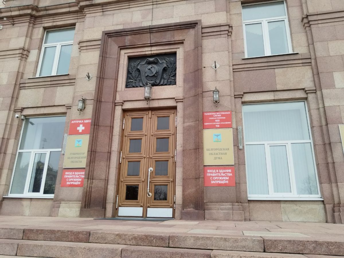 В правительстве Белгородской области рады видеть всех, но без стволов. Объявление на входе весьма актуальное - людей с оружием здесь много.