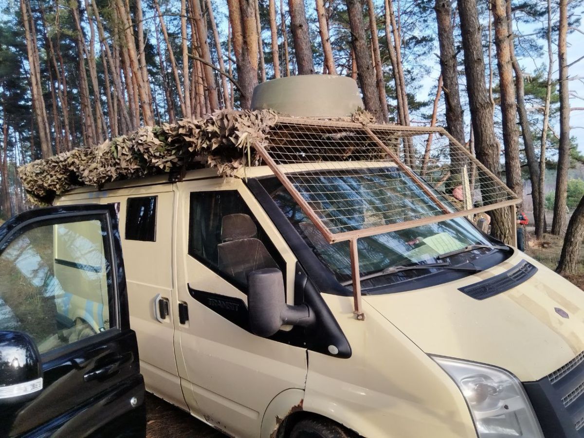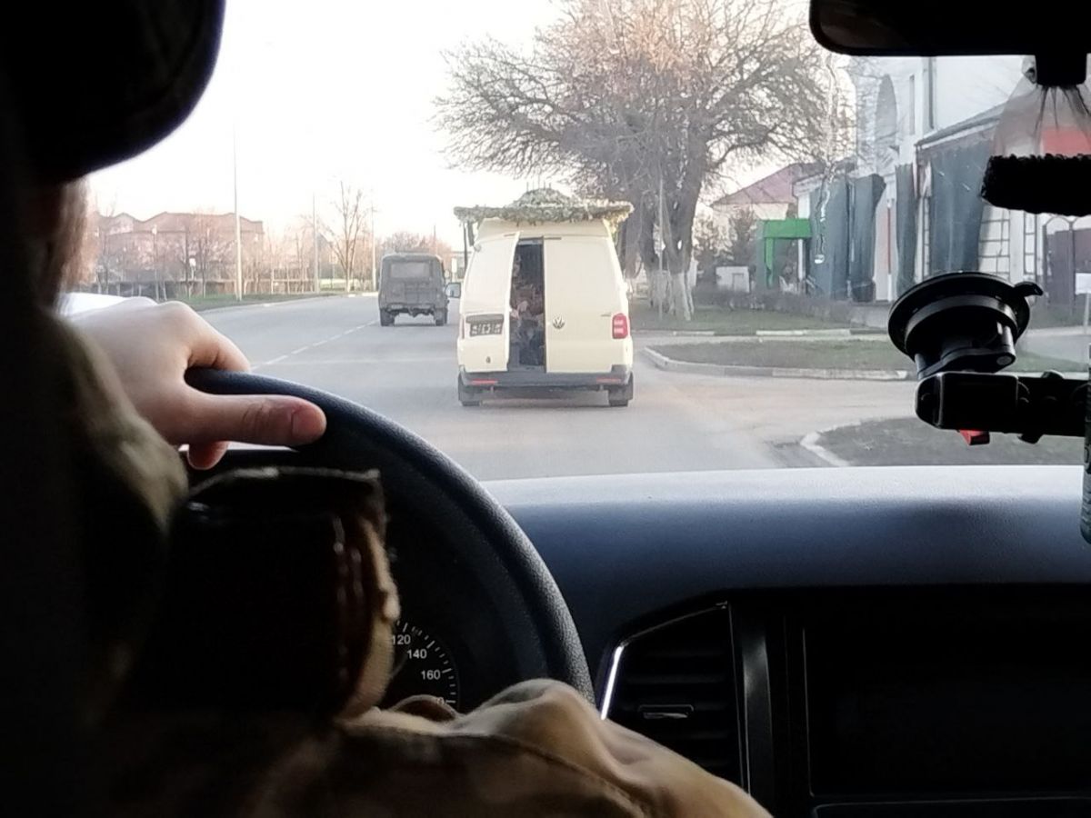 При приближении дрона на 40 метров нужно тормозить машину, включать РЭБ и выбегать на улицу. Один раз мы так и сделали. Для этого был выбран участок пути с прилегающей лесополосой - прикрытие деревьями лучше, чем стояние на открытой местности.