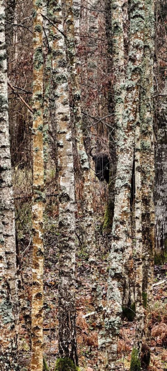 В Орловском полесье заметили замаскировавшегося среди берез зубра. Фото опубликовали на странице нацпарка в соцсетях.
