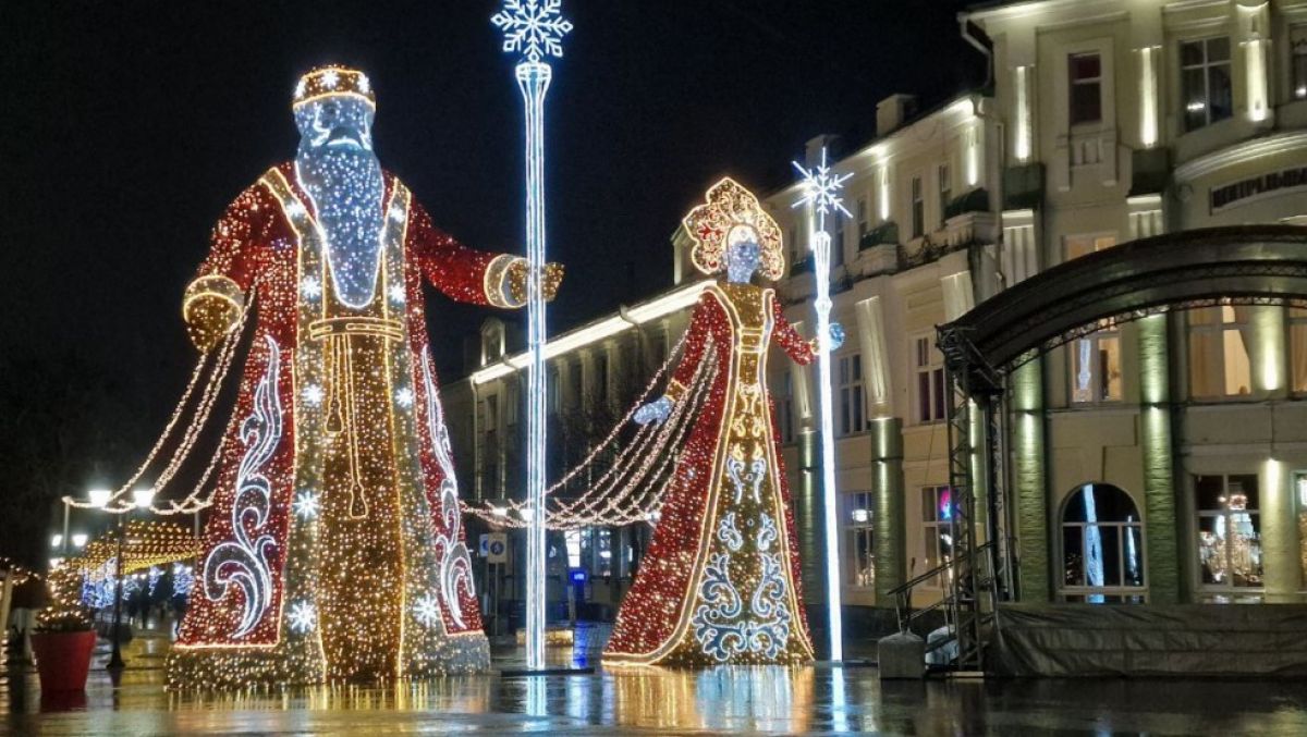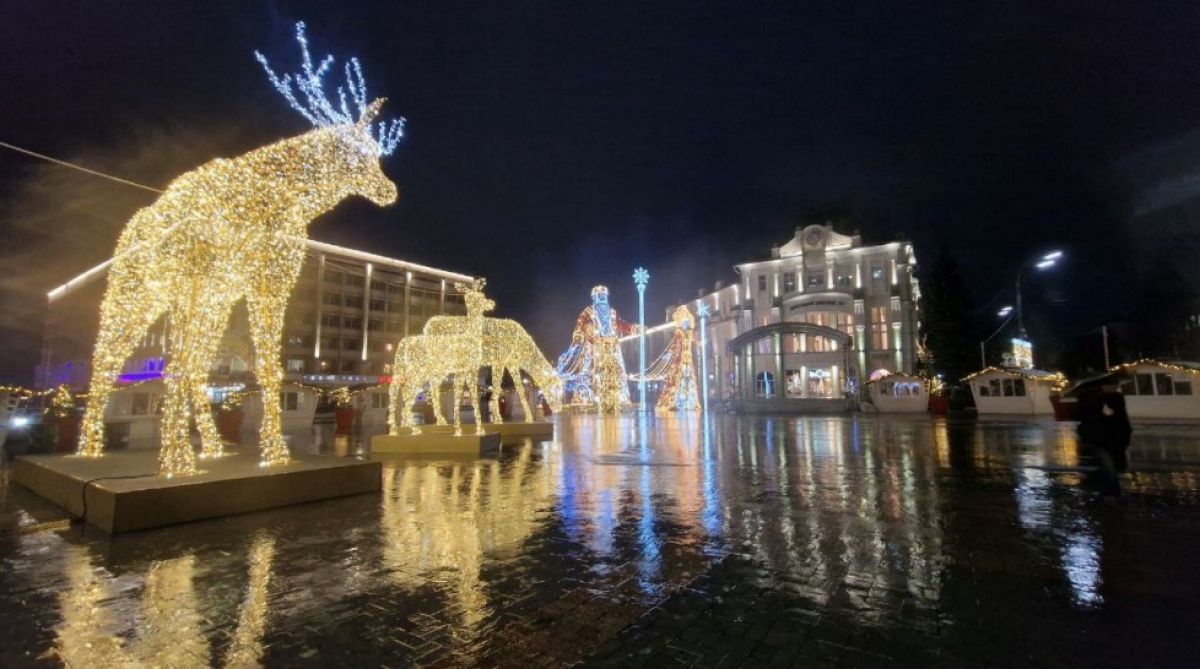 Орловцы, гуляющие в центре, могут полюбоваться фигурами световых оленей и скандальных Снегурочки и Деда Мороза.