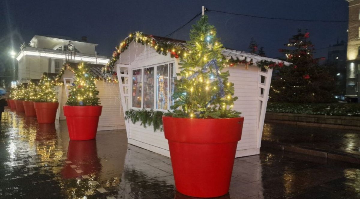 Центр Орла украсили к новогодним праздникам. На площади Ленина появилась праздничная ель и украшенные домики ярмарки.