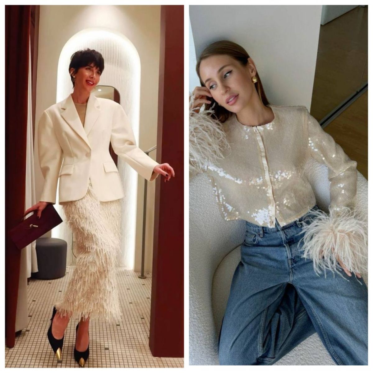 Еще один актуальный прием - это перья. Ведь, когда их носить, если не на Новый год? Тем более большинство вещей, декорированных перьями, сейчас предлагают эти элементы съемными. Обычно они пристегиваются на скрытые пуговицы, что облегчает уход за такой вещью.