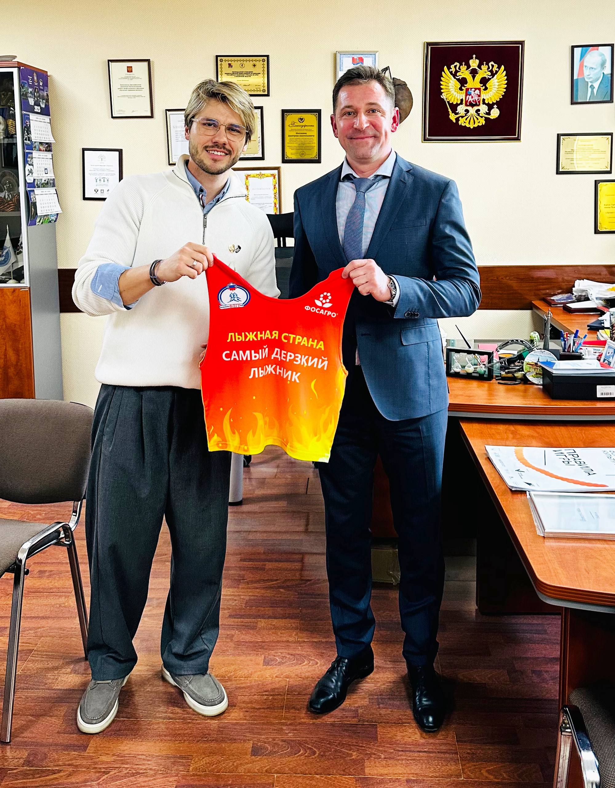 Перед презентацией Андрей Романов встретился с ним и даже написал пост об этой встрече. «По пути в Казань заехал в Орел. К легенде велоспорта Денису Меньшову. Победитель «Джиро» и «Вуэльты» в восторге от нашей «дерзкой майки», сразу выкупил откуда пришла идея - велосипедная тема most combative rider. Денис поздравил нашу программу «Лыжная страна» с первым ДР»,— написал Романов в своем телеграм-канале.