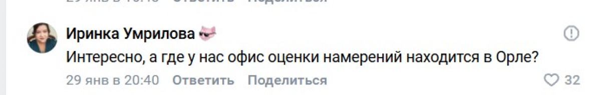 «Орловские новости» продолжают еженедельно отмечать лучшие комментарии (и их авторов). На этот раз речь идет о комментариях, оставленных в нашей группе в соцсети "ВКонтакте". Публикуем подборку за эту неделю (26 января-1 февраля). Орфография и пунктуация авторов сохранены.