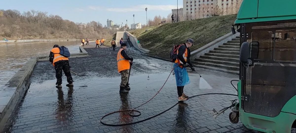 В Орле после половодья 40 человек и спецтехника очищают набережную от ила