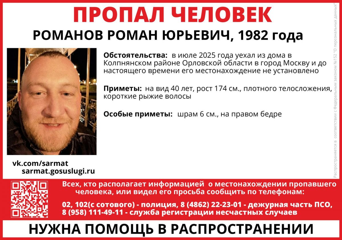 Волонтёры ищут пропавшего в июле 2025 года жителя Колпнянского района Орла