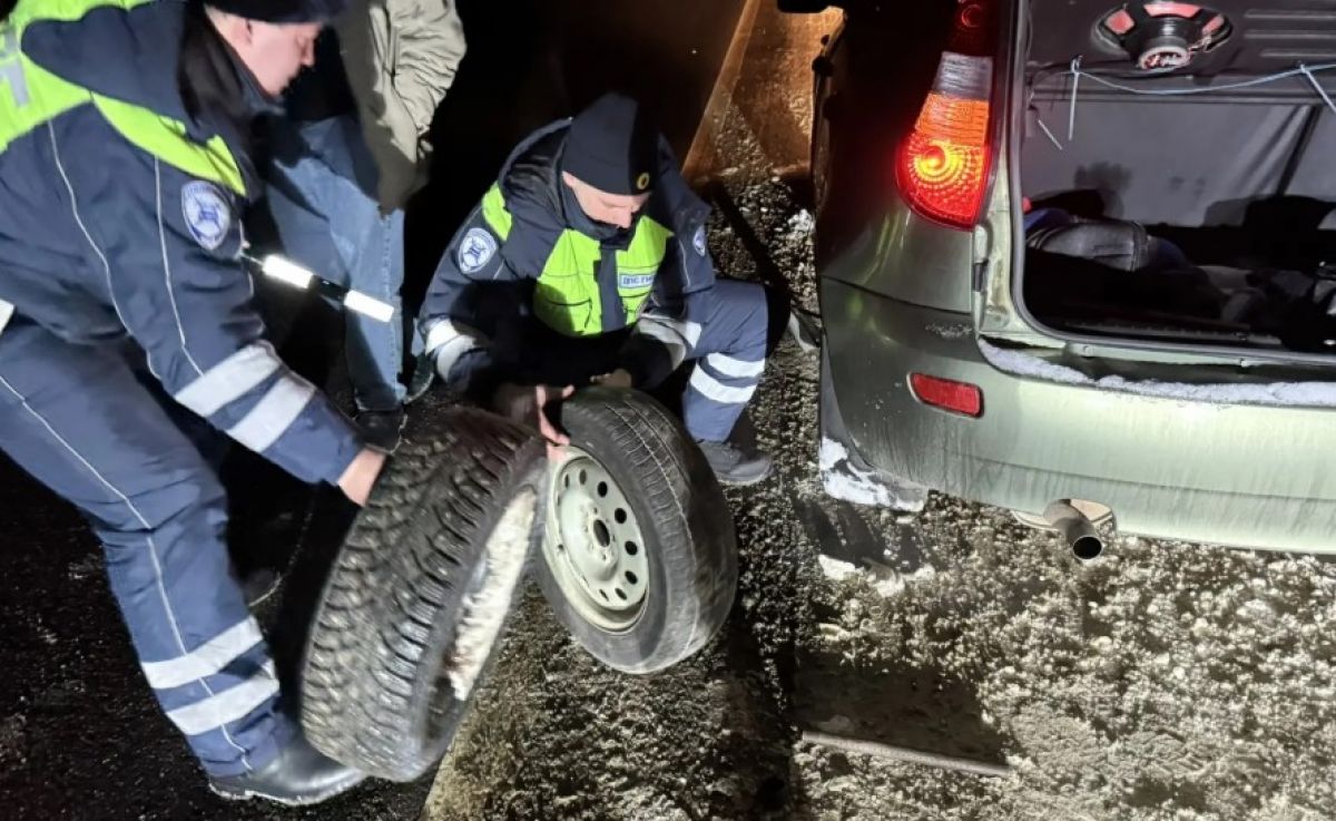 Полицейские помогли водителю поменять колесо на трассе Орёл — Тамбов