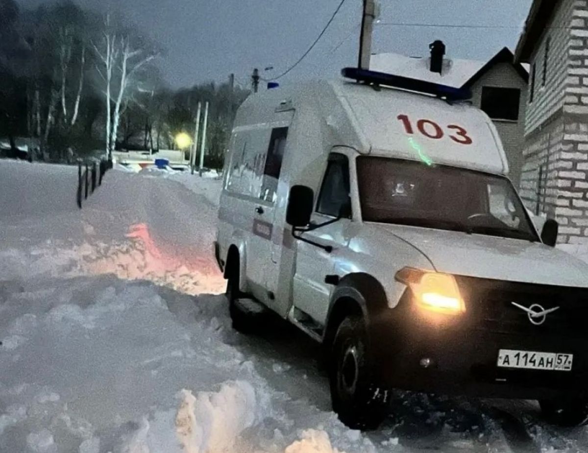 Бригада скорой помощи застряла в снегу в Орловском районе, возвращаясь из деревни