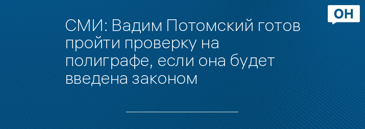 СМИ: Вадим Потомский готов пройти проверку на полиграфе, если она будет введена законом