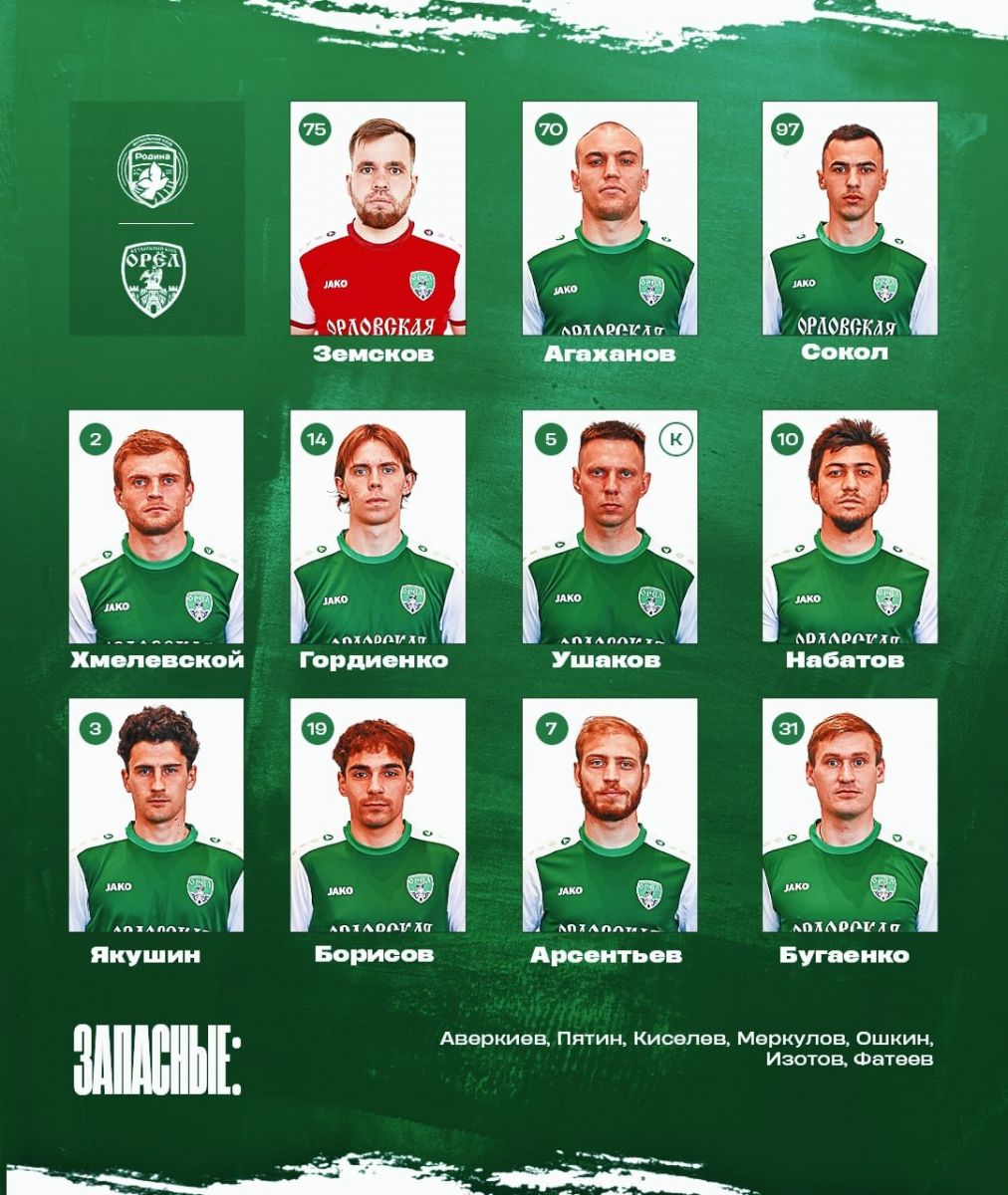 Орловскую команду поведет новый капитан Евгений Ушаков, а ворота «зелено-белых» будет защищать Павел Земсков. Также в стартовом составе «Орла» нападающий Игорь Бугаенко, защитники Вячеслав Гордиенко и Сергей Хмелевской и др.