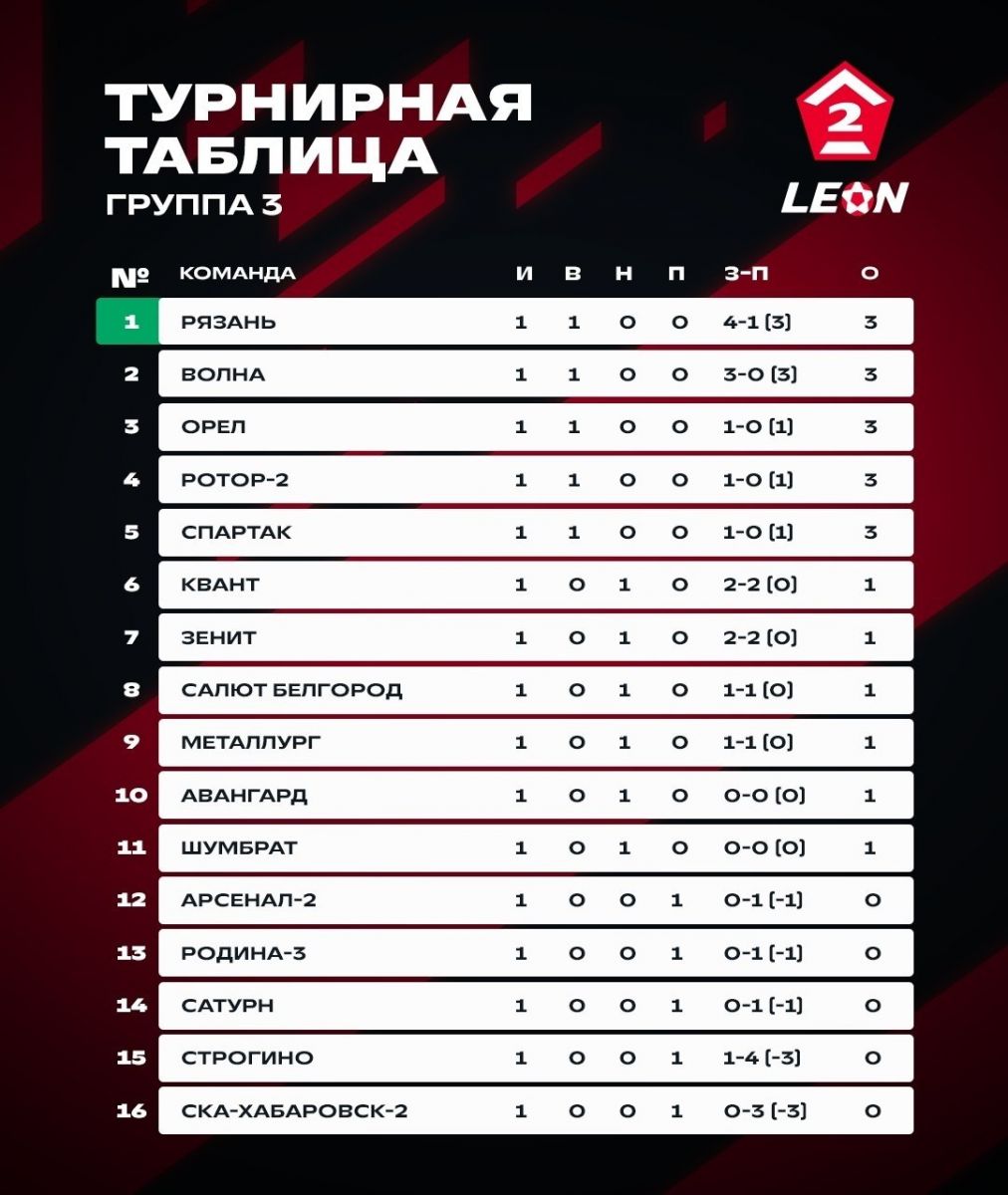 После первого матча «Орел» занимает 3-ю строчку в своей группе